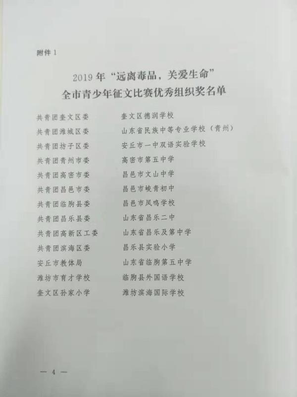 关于表彰2019年“远离毒品,关爱生命”全市青少年征文比赛获奖单位和个人的决定