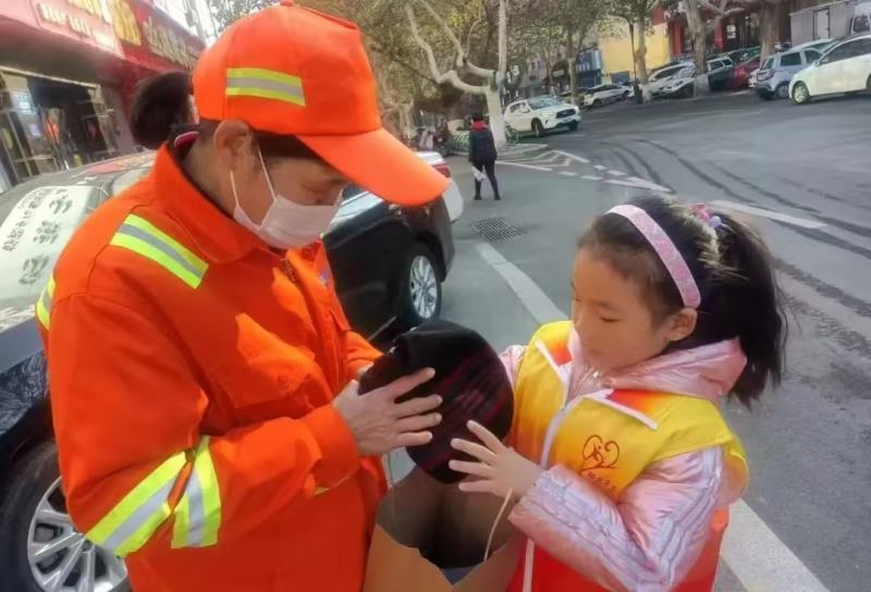 12月1日,临朐团县委联合阳光义工组织青年志愿者准备了棉帽棉袜手套口罩等。志愿者们走上街头,为环卫工人分发爱心礼包,送去温暖。