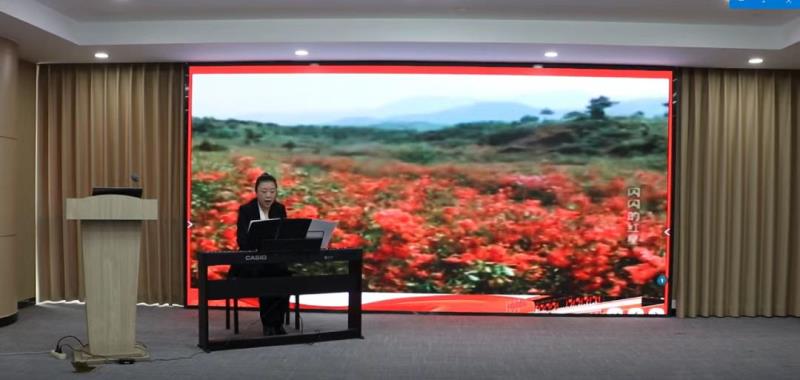 当《唱支山歌给党听》的旋律从琴键流淌而出,一段跨越三十载的红色征程在音乐党课中徐徐展开,郭婷同志用左手低音部模仿江西山歌的悠远回响,右手清亮旋律如穿透阴云的曙光,配合南湖红船、井冈会师的动态水墨画卷,在"母亲只生了我的身"的变奏中,诠释早期共产党人为信仰破茧重生的精神涅槃。