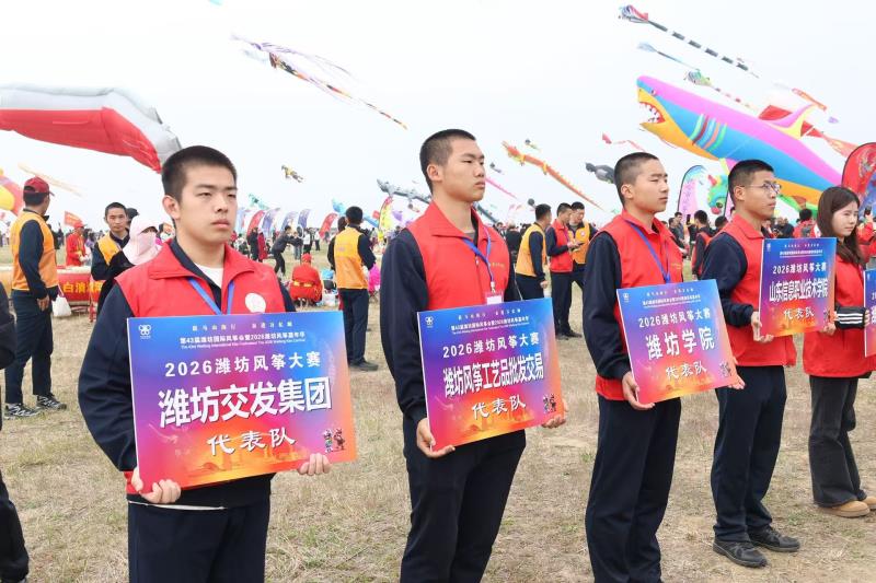 青年志愿服务队由师生260余人组成,主要承担本次风筝大赛的方队举牌、会场秩序维护、人员引导及放飞队伍保障等工作。志愿者们以饱满热情、严谨态度坚守岗位,以责任与担当守护现场安全有序,用实际行动践行志愿服务精神,展现了青年志愿者热爱潍坊、朝气蓬勃、乐于奉献的优良风貌。