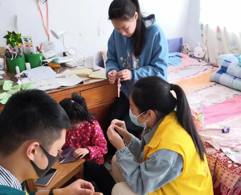 小宁的“希望小屋”建成后,团干部和志愿者们定期到小宁家中开展志愿服务,不仅送来各种生活用品,还给予小宁亲情陪伴和关怀。志愿者哥哥姐姐陪伴小宁一起聊天、游戏、看电影,贴心的陪伴,抚平了小宁心中的不安和孤单;志愿者们还利用周末时间,陪伴小宁一起学习、做手工、整理房间,在志愿者们的陪伴下,时光总是过得很快。生活的不易没有磨灭小宁对美好事物的向往,闲暇时光,她总是沉浸在手工世界里,用彩纸剪出灵动花鸟,为布娃娃缝制精美衣裳,用折纸变幻出栩栩如生的小动物。这些精致的手工小制作,不仅装点了家中角落,更承载着她对生活的热爱与期许。小宁以她的独立、勤劳与巧思,诠释着生活的美好。