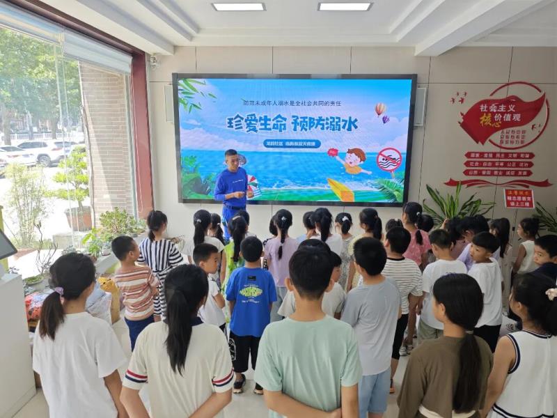 滨海区团委联合志愿者协会组织志愿者们在暑期开展防溺水宣传活动。在走访中,志愿者为青少年发放“防溺水”宣传画,教授防溺水安全知识,提醒同学们远离危险水域。