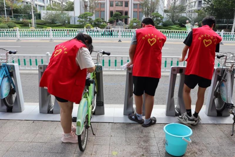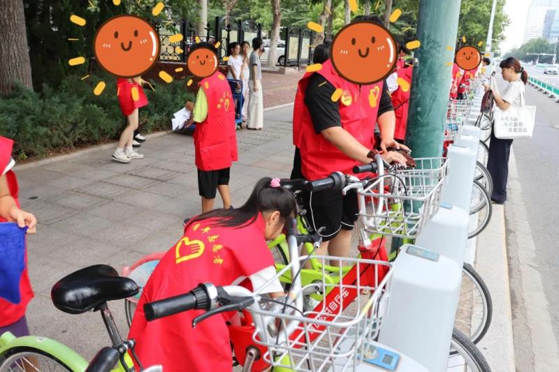 第二站,“希望小屋”青少年们化身小小志愿者,来到人民广场的公共自行车站点,开展了清洁公共自行车志愿服务活动。孩子们带着抹布、水桶等工具,分工合作,仔细擦拭每一辆公共自行车的车把、车座、车身,清理车筐杂物等。“能让大家骑上干净的单车,我觉得特别有意义!”一名“希望小屋”青少年说。通过本次志愿服务活动在孩子们心中埋下热爱劳动、爱心奉献的种子。