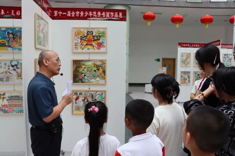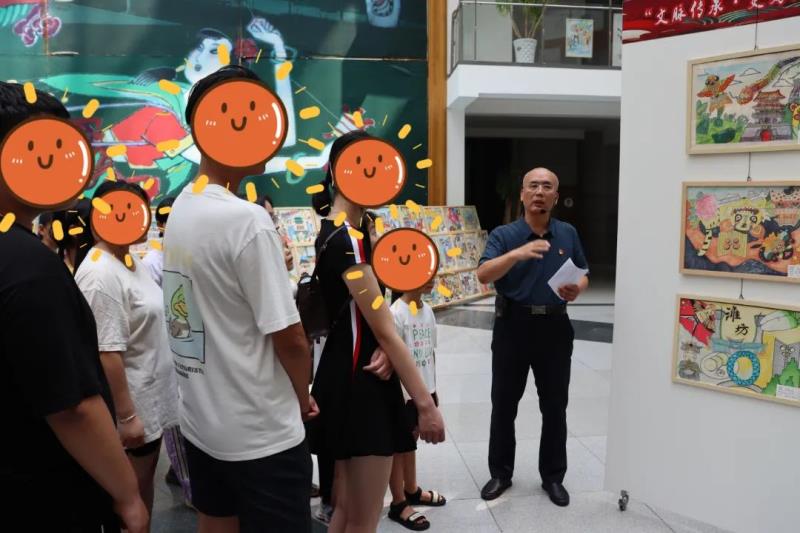 第三站,孩子们来到潍坊市青少年发展服务中心,参观“文脉传承 更好潍坊”——第十一届全市青少年优秀书画作品展。在讲解员的带领下,孩子们沉浸于翰墨丹青的世界,儿童画、中国画、书法、油画,一幅幅色彩斑斓、笔触生动的作品,让孩子们目不暇接。孩子们驻足凝视、轻声交流,在色彩与笔触的交织中欣赏书画作品之美,感受传统文化的魅力。